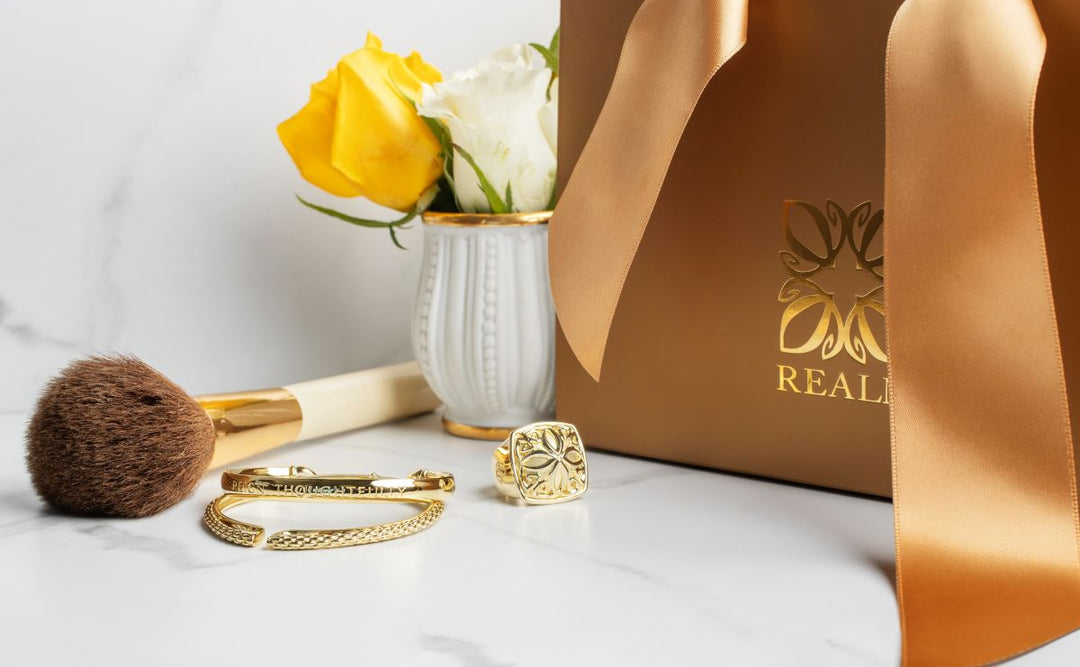 "The Reign Thoughtfully Cuff captures the heart of REALM. We love how it offers a gentle reminder when you look at your wrist to be both strong and kind as you reign in your realm. I hope this bracelet—and all of our jewelry—can inspire and uplift you every day."